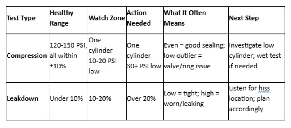 - Consistency Trumps Numbers: All four cylinders within ±10% of each other matters more than hitting a specific PSI target.
